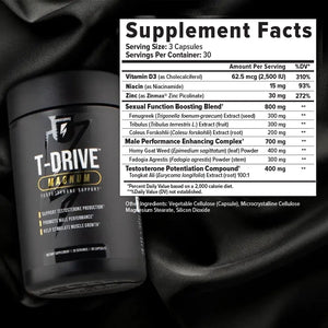 We recommend taking 3 capsules of T-Drive™ Magnum daily at any time of day, with or without food.*