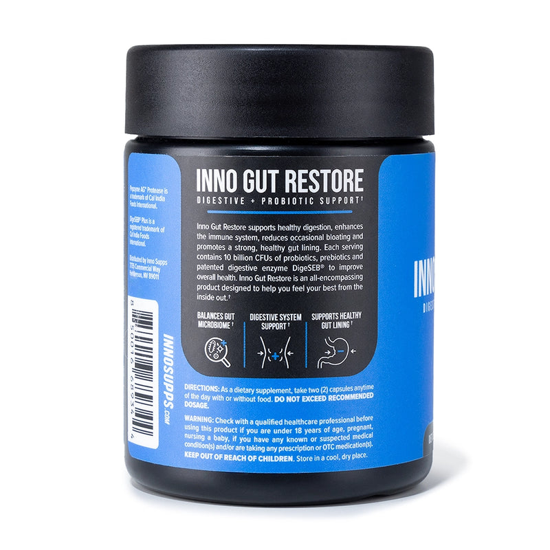 - Patented Complete Digestive Enzymes* Most digestive enzyme supplements don’t contain the full and effective blend of essential enzymes. Inno Gut Restore does and we use DigeSEB® which contains a complete blend of amylase, protease, lipase, cellulase, and lactase.*