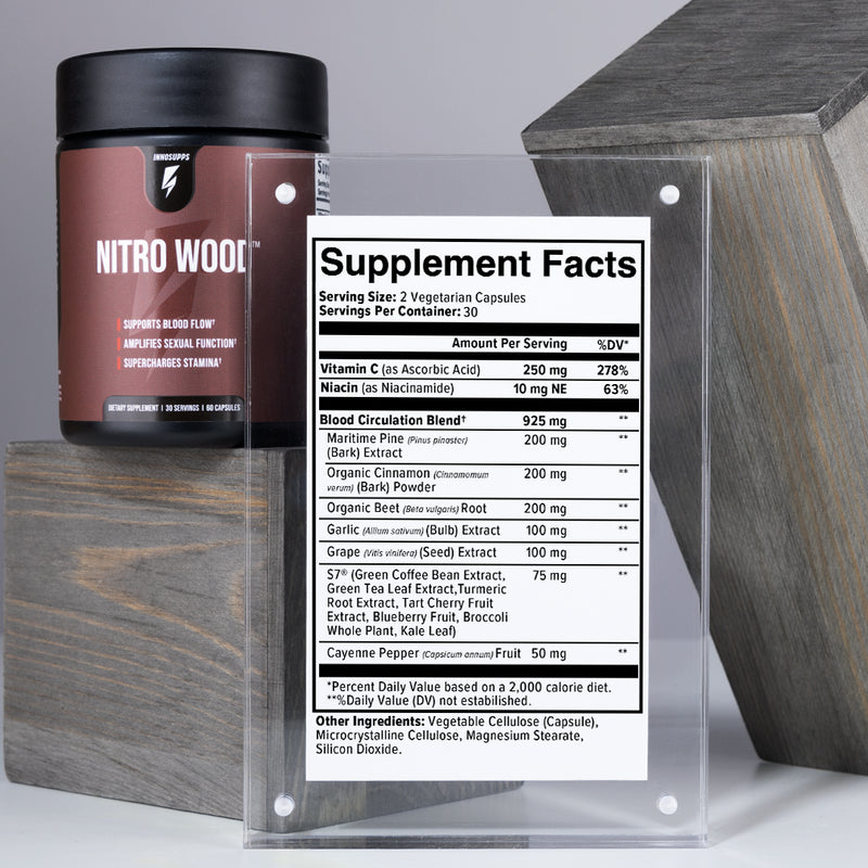 Nitro Wood™ has nature-based ingredients that are research based and shown to improve blood flow and circulation throughout the body by promoting your body’s own natural production of nitric oxide.*